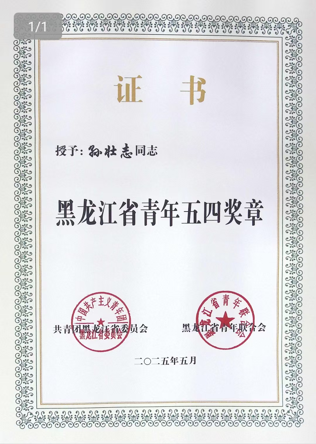 热烈祝贺太阳成集团tyc孙壮志教授荣获26届黑龙江省青年五...