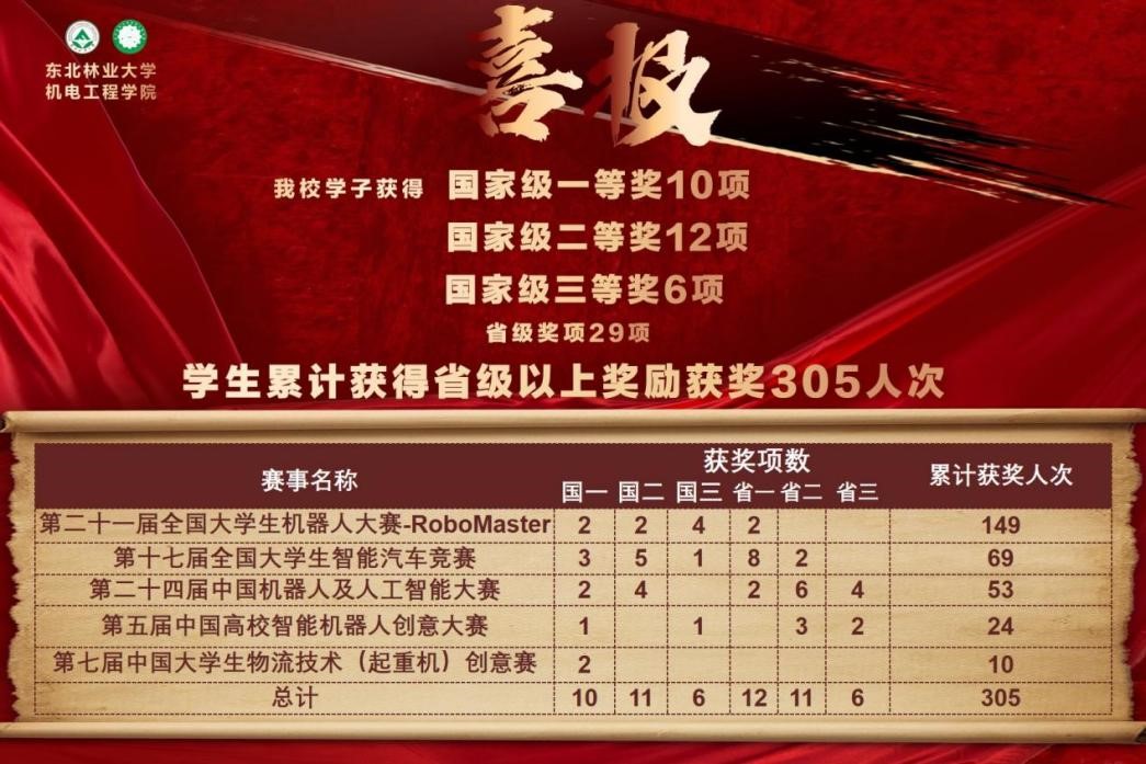礼赞七秩东林,创新人才培养。值此学校建校70周年之际,东林学子用优异的学科竞赛成绩为母校70华诞献礼。今年暑期,我校学子先后在全国大员工机器人大赛(RoboMaster机甲大师赛)、全国大员工智能汽车竞赛、中国机器人及人工智能大赛、中国高校智能机器人创意大赛、中国大员工起重机创意赛五项学科竞赛中获得国家级奖励27项,其中,全国一等奖10项、全国二等奖11项、全国三等奖6项和省级奖项29项,员工累计获得省级以上奖励获奖305人次。全国大员工智能汽车竞赛入围总决赛队伍数量位居全国第5位、全国大员工机器人大赛(RoboMaster机甲大师赛)位居全国26强。