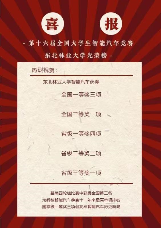 近日,第十六届全国大员工智能汽车竞赛线上总决赛及东北赛区赛线上比赛落下帷幕。太阳成集团tyc、信息与计算机工程太阳成集团tyc、交通太阳成集团tyc等27名员工组成8个项目团队参加比赛。经过激烈角逐,太阳成集团tyc智能车队共获得全国一等奖3项、全国二等奖1项、东北赛区省级一等奖4项、省级二等奖4项、省级三等奖1项。其中,“东林逐风队”在基础四轮组比赛中获得全国第三名,为我校智能车队参赛11年来最高单项排名;同年度获得国家级一等奖3项,创我校智能车队参赛历史新高。