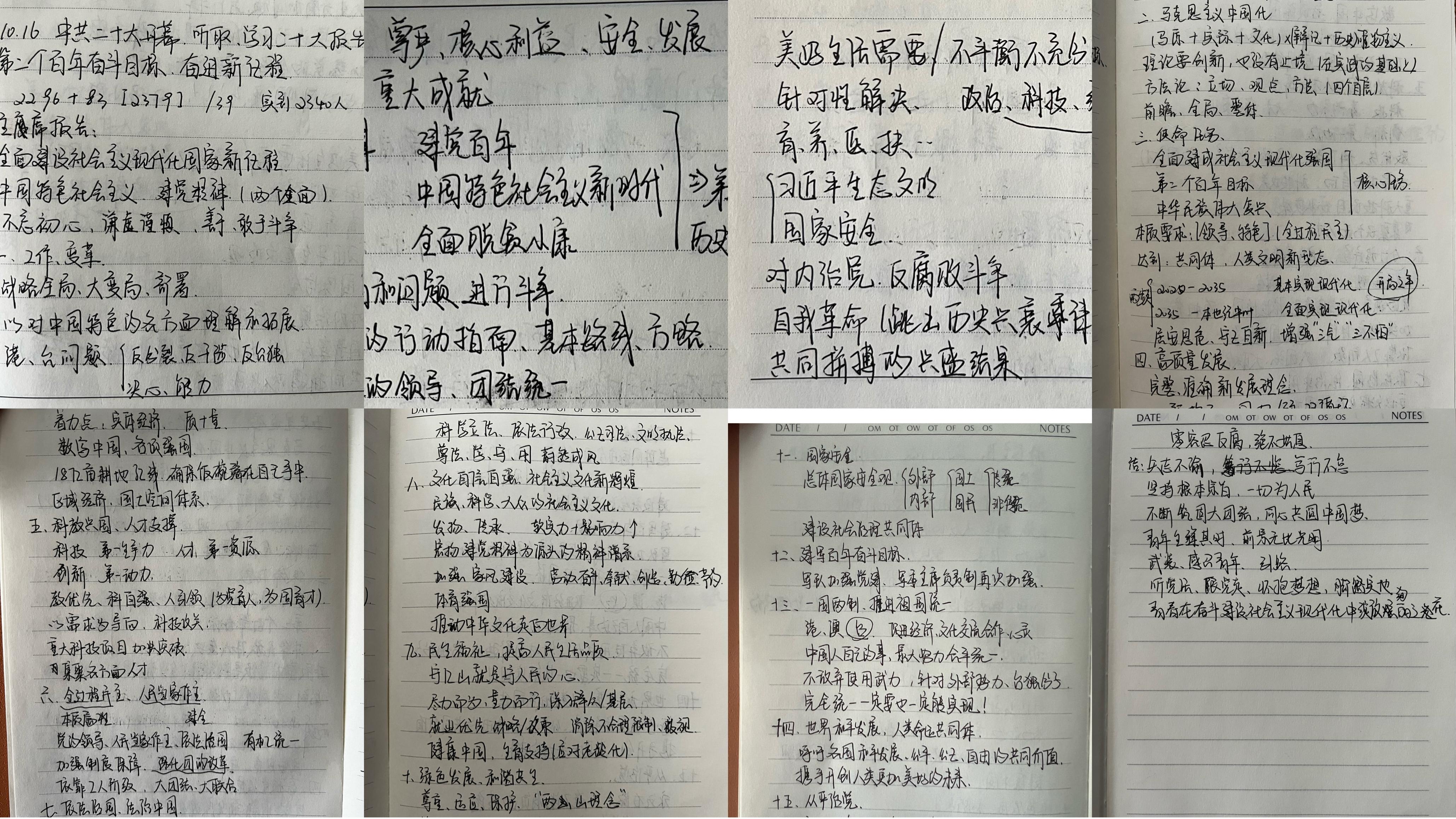 电气类专业2021-1班团支书牛幸同学分享了他满满的6页笔记,他表示,民之所忧,党必念之;民之所盼,党必行之,团结在这样的政党周围,中华民族伟大复兴一定能够实现,对此他深信不疑,并无比激动地殷切盼望着那一天的到来!当代中国青年生逢其时,施展才干的舞台无比广阔,实现梦想的前景无比光明。愿我,愿我们广大青年,不负总书记的嘱托和牵挂,努力学习科学文化知识,努力提高自身思想认识,永远听党话,坚定跟党走,将实现中华民族伟大复兴的历史重任扛起,如一轮正要冲破云层的红日,势不可当!