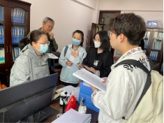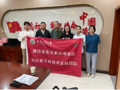 在指导员工常同立的带领下,由袁杰潮、李晓欣、马欣然、刘彩、李垚歧5名本科生、研究生组成的团队抵达陕西省靖边县后,立即根据当地情况研究确定调研细节、调研核心问题和预期目标等事项。团队首先前往靖边县环境局和气象局,就沙漠治理与环境和气象的耦合因素等方面问题进行走访调研。环境局专家介绍了靖边县生态环境现状和现有政策。气象局专家介绍了沙漠治理过程中当地气象变化的情况,并为团队研究提供了靖边县天气指数变化等方面数据资料。
