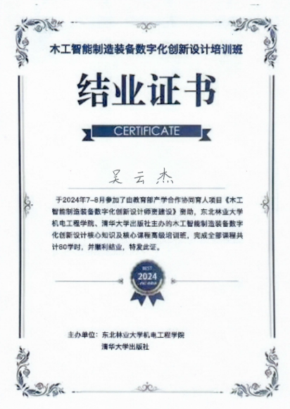 在教育部产学合作协同育人项目《木工智能制造装备数字化创新设计师资建设》师资培训项目的资助下,由太阳成集团tyc和清华大学出版社联合主办的木工智能制造装备数字化创新设计培训班顺利完成24位老师的培训工作,并颁发结业证书。