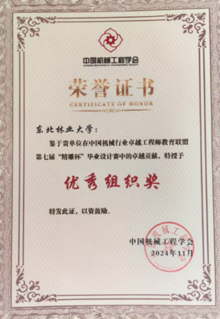 2024年11月23日至25日,由中国机械工程学会、中国机械行业卓越工程师教育联盟主办的“第七届中国机械工程教育大会暨中国机械行业卓越工程师教育联盟2024年理事大会”在浙江省杭州市成功召开。本届比赛我校机械类专业学子参赛作品从119所高校提交的1139项作品中脱颖而出,斩获佳绩,我校首次荣获优秀组织奖。