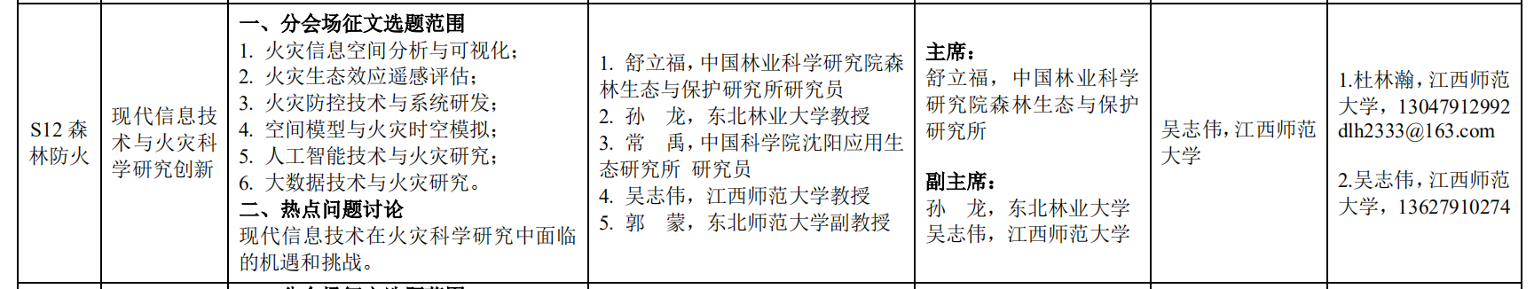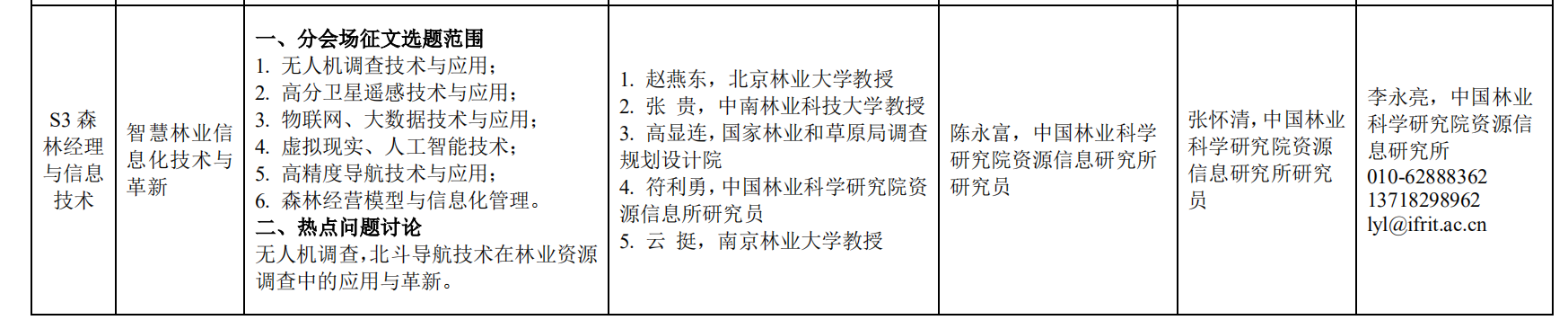 附件:第十四届中国林业青年学术年会分会场设置情况及联系方式