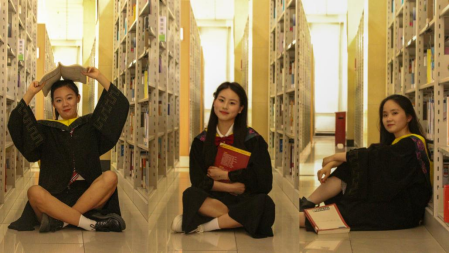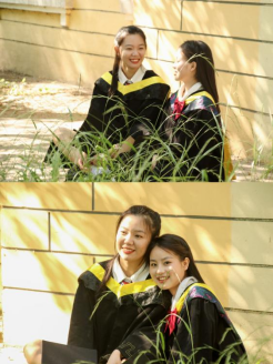 身穿学士服,头戴学士帽
