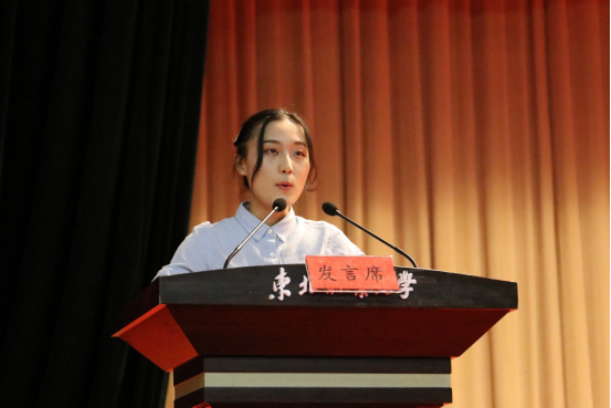 新生代表强晨曦代表新生发言,他回顾了高中三年的挑灯夜读的辛苦,又表达了对即将到来的多彩大员工活的期待,展现了作为新机电人的意志与气魄。