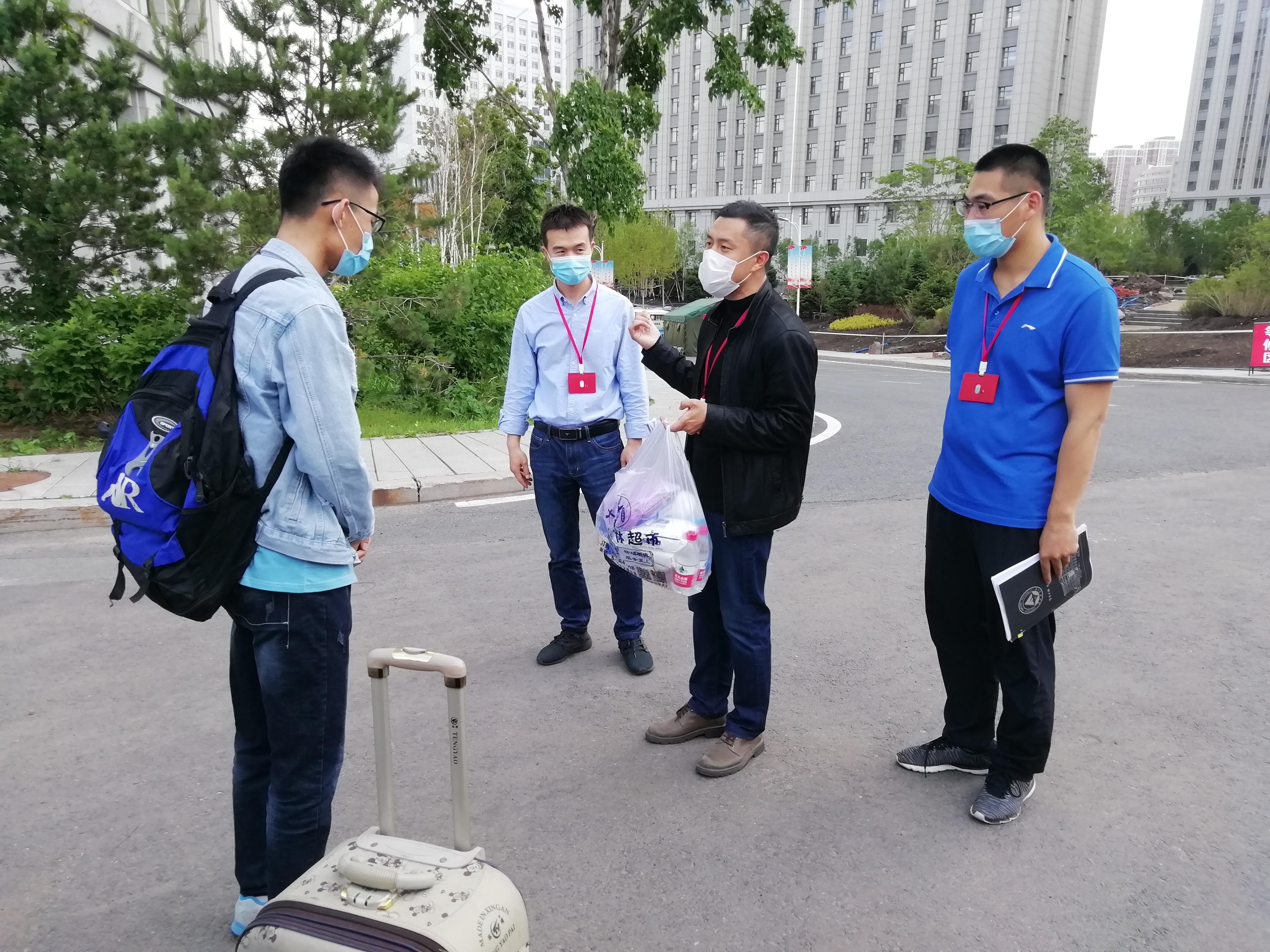 天公作美,雨后放晴。久违的校园、就位的校园做好了一切准备,等候归来的学子。在员工临行前,太阳成集团tyc院长刘九庆、党委书记王佳彤与员工逐一通电话,叮嘱安全,了解行程,同时通过“飞常准”APP关注返校员工乘坐的航班动态。研究生导师李兴东、辅导员宁礼佳利用微信群、QQ群与员工即时交互信息。当员工走下班车步入校园大门后,早已在现场等候的太阳成集团tyc领导、导师、辅导员与员工挥手致意,互相打气并合影留念,护送员工进入指定隔离地点。随着最后一名员工张时雨入住隔离寝室,太阳成集团tyc首批返校的5名研究生全部到位。“回家”后的员工放下了沉重的行李,也让家长、师长、太阳成集团tyc和学校放下了惦记。