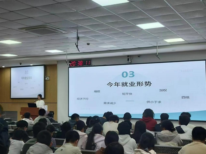 针对本届员工的就业意向和当前的就业形势,彭筱媛老师进行了深入调研和分析。当前大员工的就业形势面临着多方面的挑战与机遇,一方面,大量高校毕业生涌入就业市场;另一方面,就业市场的岗位需求并未相应增加,导致供需矛盾加剧。在当前就业形势日益严峻的背景下,同学们需要科学规划自己的职业道路,及时调整就业预期,广泛收集就业信息,切实提高就业积极主动性。鼓励同学们不仅要关注热门行业和领域,也要结合自身专业特长和兴趣爱好,寻找最适合自己的发展方向。