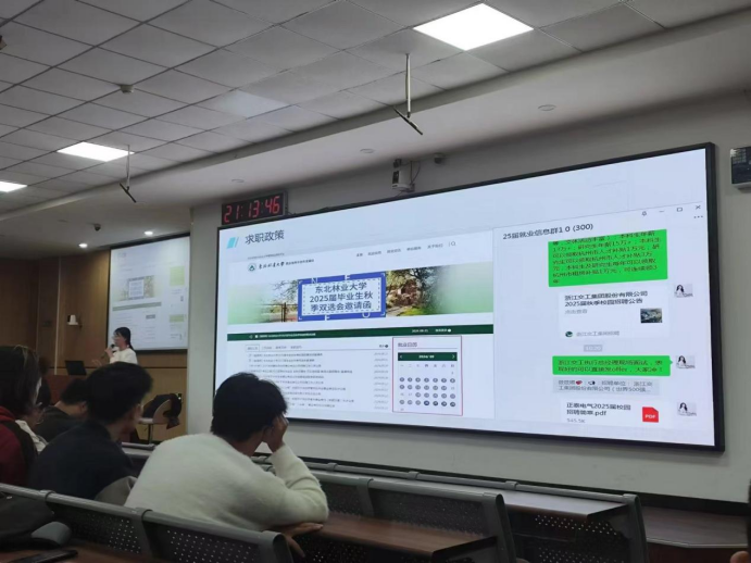 在谈到考研、推免和求职政策时,彭筱媛老师逐一进行了详细说明。她指出,考研是许多同学提升学历、深化专业知识的重要途径。今年全国硕士研究生招生考试网上预报名即将开始,提醒同学们要密切关注考研动态和政策变化,合理安排复习时间和计划。在求职政策方面,彭筱媛老师详细介绍了国家和学校为毕业生提供的各种就业服务和支持措施。她表示,学校积极搭建就业平台,邀请用人单位进校