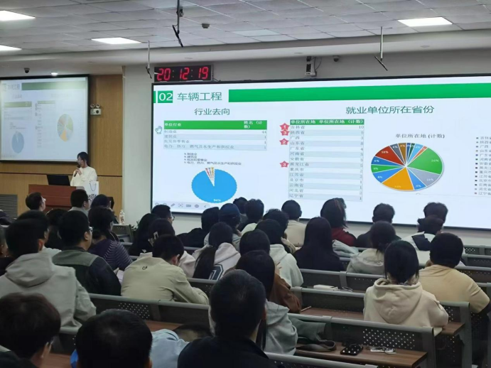 会议伊始,彭筱媛老师详细分析了往届毕业生的去向,指出在过去几年中,一部分毕业生选择继续深造,攻读硕士或博士学位,他们通过不懈的努力,在学术道路上取得了显著成果;另一部分毕业生则投身于公务员和事业单位的考试;同时,也有大量毕业生积极投身于市场,通过实习、兼职和自主创业等方式积累经验和能力,为未来的职业生涯打下坚实基础。