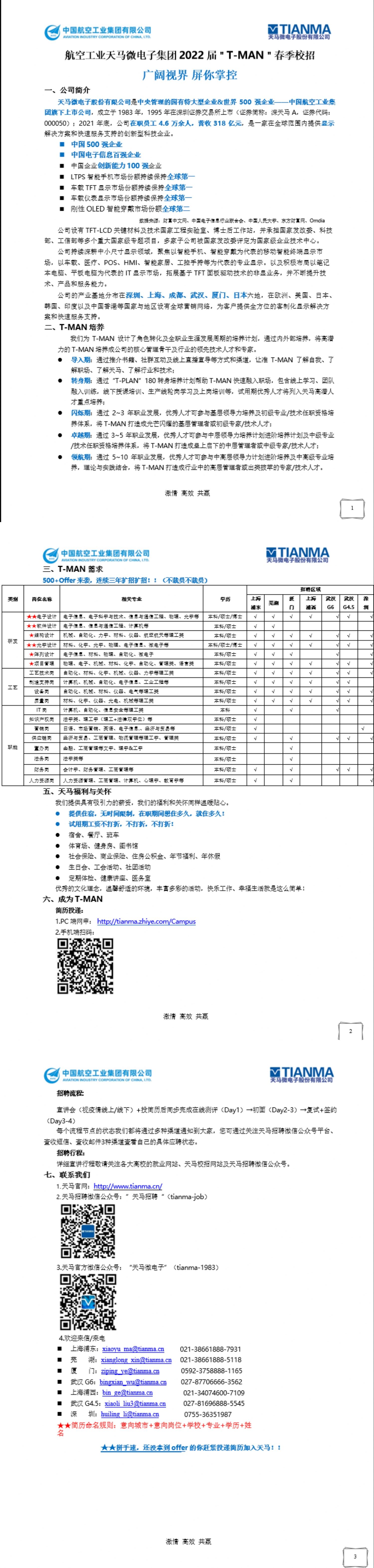 【招聘信息】广阔视界 屏你掌控|航空工业天马微电子集团2022届“T-MAN”春季校招