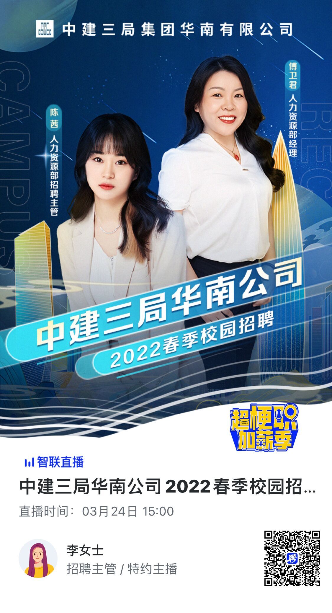 【招聘信息】【中建三局华南公司】直播招聘开始啦!锁定直播,前排抢座!